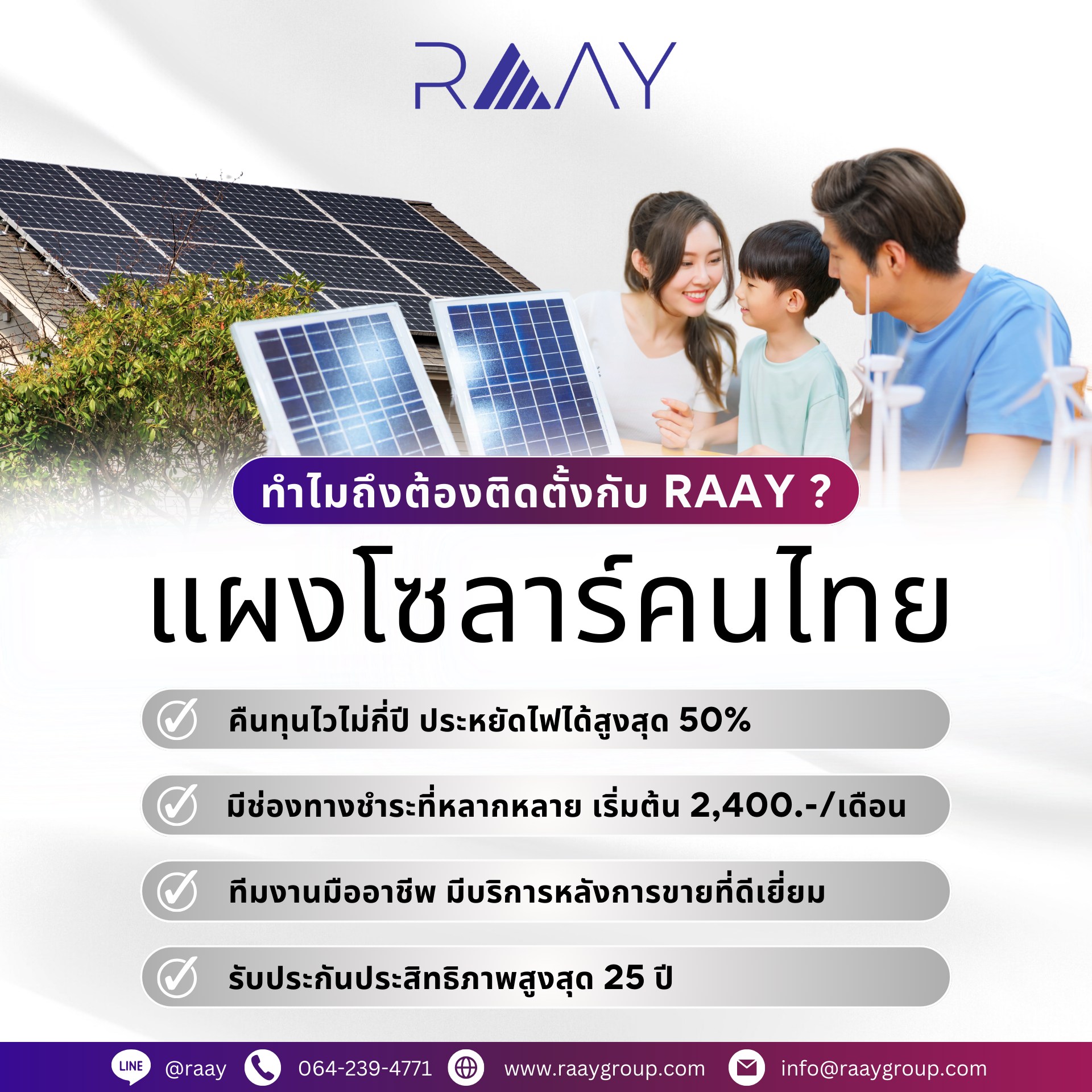 ติดตั้งโซลาร์เซลล์กับ RAAY คุ้มค่า ประหยัด ไร้กังวล!