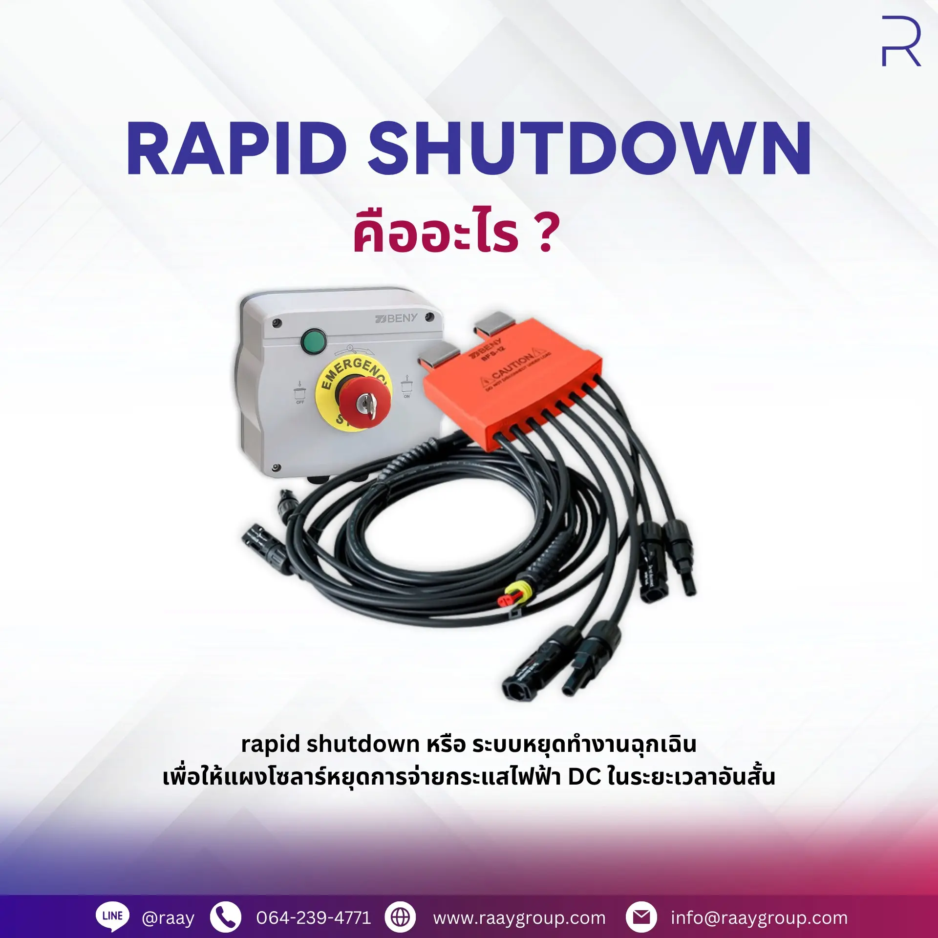 rapid shutdown หรือ ระบบหยุดทำงานฉุกเฉิน เพื่อให้แผงโซลาร์หยุดการจ่ายกระแสไฟฟ้า DC ในระยะเวลาอันสั้น